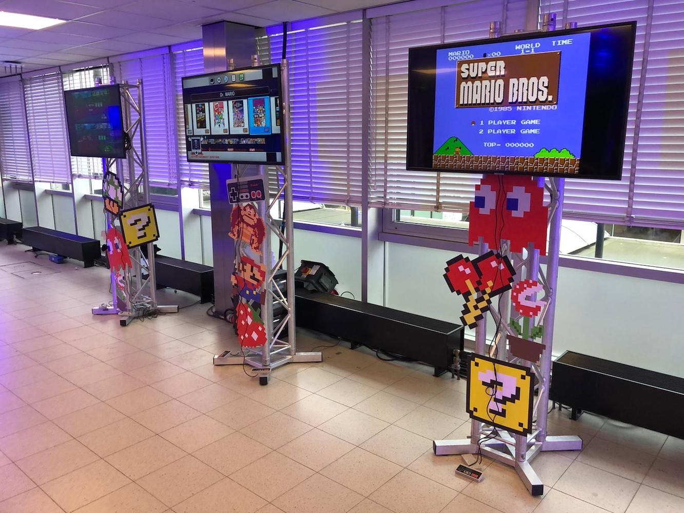 Experience the charm of retro games like Super Mario Bros., Donkey Kong, PAC-MAN, and Kirby's Adventure. Whether alone or with a partner, travel back in time to avoid ghosts, save princesses, or have the adventure of your life. With twelve iconic games, we bring you back to the '80s and '90s.